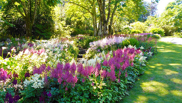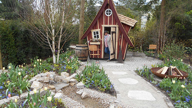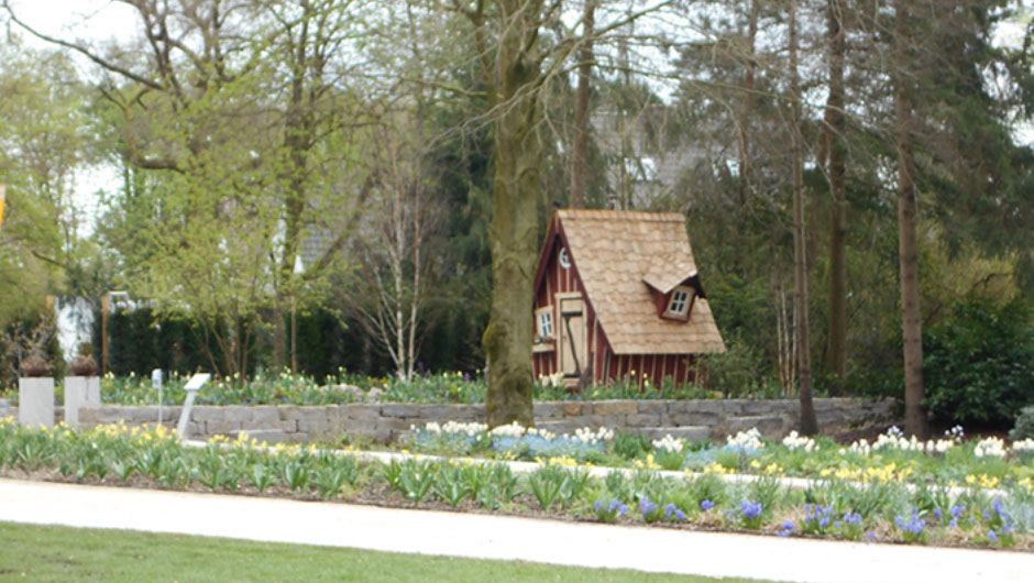 Das Thema Märchen passt perfekt in die Waldlandschaft. Ein Hexenhäuschen, eine Feuerstelle, Spiegel und eine kleine Quelle standen für die Märchen Hänsel und Gretel, Rumpelstilzchen, Schneewittchen und Brüderlein und Schwesterlein. Giftige Pflanzen, aber auch Heilpflanzen waren zu finden. „Man kann auch schattige Plätze so bepflanzen, dass sie das ganze Jahr über etwas Blühendes haben – und der Pflegeaufwand hält sich trotzdem in Grenzen – letzteres wird heutzutage immer mehr von den Kunden gefordert“, sagt Antje Birner.