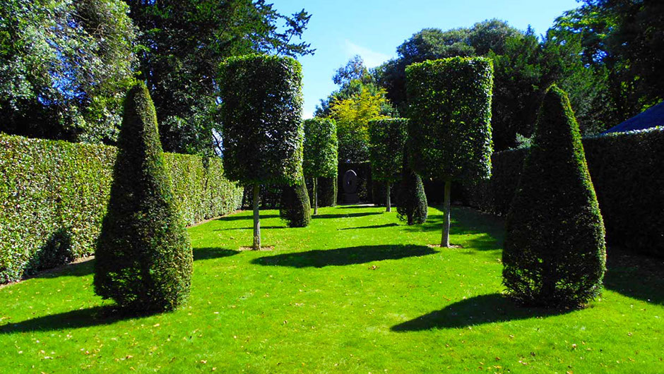 ZAUBERSPIEGEL zwischen Heckenelementen schaffen Raum und Weite. Geheimnisvoll spiegeln sie die Vielfalt der Pflanzen wider.